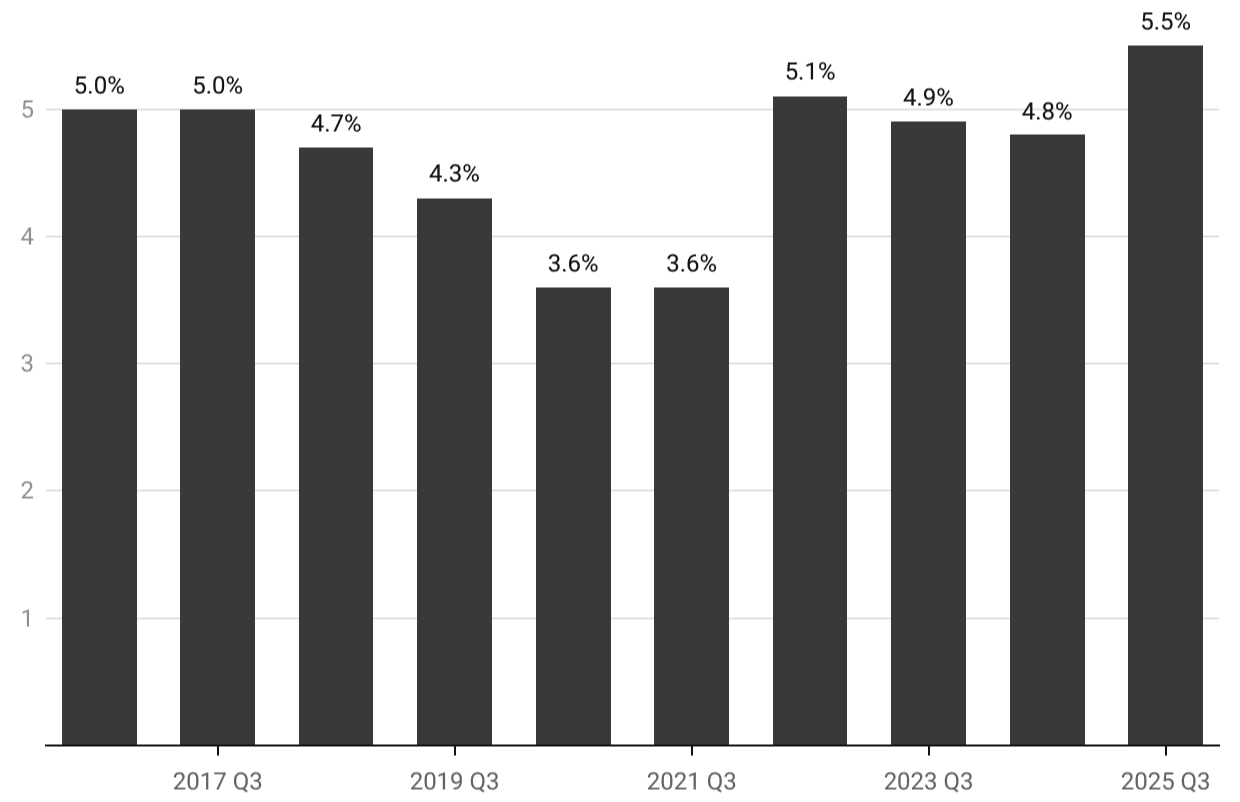 While national active inventory is still up year-over-year, the pace of growth has slowed since summer as some home sellers have thrown in the towel and delisted their properties. Indeed, according to Redfin, U.S. delistings as a share of inventory recently ticked up to 5.5%—a decade-high reading for this time of year.